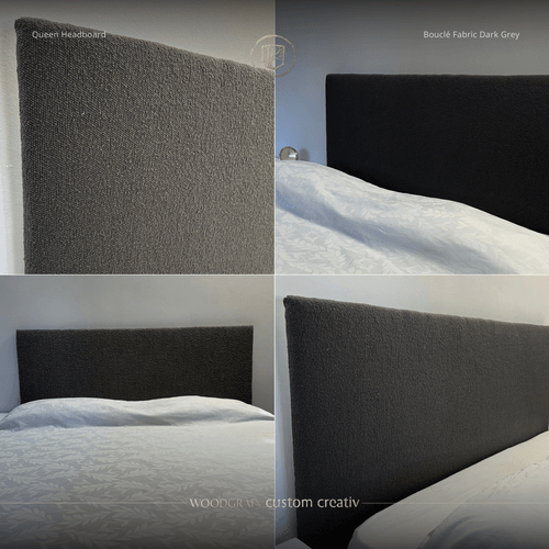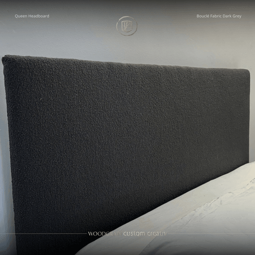 Velvet Dark Grey Bouclé Queen Size Headboard – Full Length