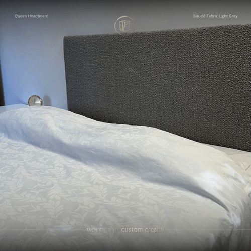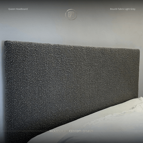 Velvet Grey Bouclé Queen Size Headboard – Full Length